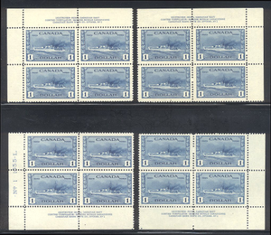 Scott #262: 1942 $1.00 Destroyer Centering & Condition: Mint. Fresh. Very Fine Matched Plate Block set. Reverse (Gum Side): Original gum. Never Hinged except the Upper Left block has a tiny Faults / Imperfections: None The item pictured is the actual item you are purchasing, unless otherwise noted. I also offer an interest-free layaway plan. Ask me about it!" All items will be mailed a day or two after payment is received. -------------------------------------------------------------------------------- Please click any of the following to read: |