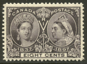 Scott #56: 1897 8c Jubilee Centering & Condition: Mint. Fresh. Rich color. Very Fine. Reverse (Gum Side): Original gum. Never Hinged. Faults / Imperfections: None The item pictured is the actual item you are purchasing, unless otherwise noted. I also offer an interest-free layaway plan. Ask me about it!" All items purchased will be mailed a day or two after payment is received. --------------------------------------------------------------------------------