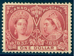 Scott #61: 1897 $1.00 Jubilee Centering & Condition: Mint. Fresh. Rich color. VF/XF and CHOICE! Reverse (Gum Side): Original gum. Hinged. Faults / Imperfections: None The item pictured is the actual item you are purchasing, unless otherwise noted. I also offer an interest-free layaway plan. Ask me about it!" All items purchased will be mailed a day or two after payment is received. --------------------------------------------------------------------------------