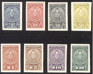 Scott #QST1-8P4: 2c - $30 Quebec Transfer Set Centering & Condition: Very Fine set of the SCARCE Card Proofs. Reverse (Gum Side): N/A Faults / Imperfections: None The item pictured is the actual item you are purchasing, unless otherwise noted. I also offer an interest-free layaway plan. Ask me about it!" All items will be mailed a day or two after payment is received. --------------------------------------------------------------------------------