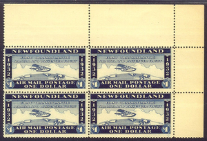 Scott #C12 var: 1932 Wayzata Airmail Centering & Condition: Mint. Fresh. Fine-Very Fine Corner Block. Reverse (Gum Side): Original gum. Never Hinged. Faults / Imperfections: None The item pictured is the actual item you are purchasing, unless otherwise noted. I also offer an interest-free layaway plan. Ask me about it!" All items will be mailed a day or two after payment is received. ![]() ![]() ![]() --------------------------------------------------------------------------------