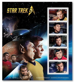 Star Trek 50th Anniversary Pane of 5 Collectible Postage Stamps