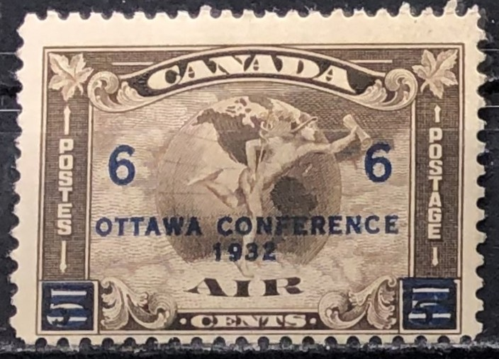 Allegory - Air Mail Circles Globe, overprinted and surcharged, 1932. Single.