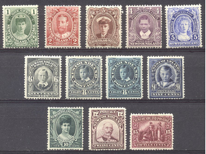 Scott #104-14: 1911 Royal Family Set Centering & Condition: Mint. Fresh. Fine-Very Fine set. Reverse (Gum Side): Original gum. Mostly Lightly Hinged. Faults / Imperfections: None The item pictured is the actual item you are purchasing, unless otherwise noted. I also offer an interest-free layaway plan. Ask me about it!" All items will be mailed a day or two after payment is received. --------------------------------------------------------------------------------