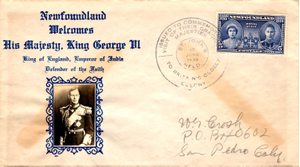 Newfoundland Welcomes King George VI on Crosby Photo Cachet Cover