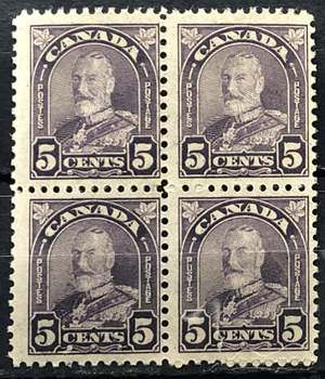 King George V, maple leaf in corner, 1930-31. Block of 4