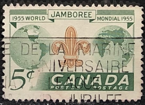 Globe and Scout Emblem, 8th Boy Scout World Jamboree, Niagara-on-the-Lake, Ontario, 1955. Single.
