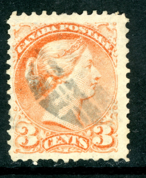 Canada 1873 3¢ Orange Red Small Queen Scott #37 VFU X996