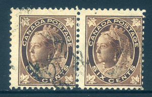 Canada 80 pair, 6¢ Victoria, Used, Fine, small thins on left stamp, Scott $115