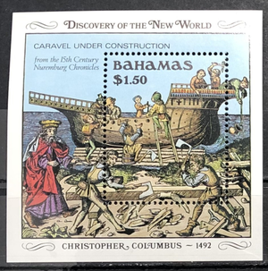 Discovery of America, Caravel under construction, 1989. Souvenir sheet.