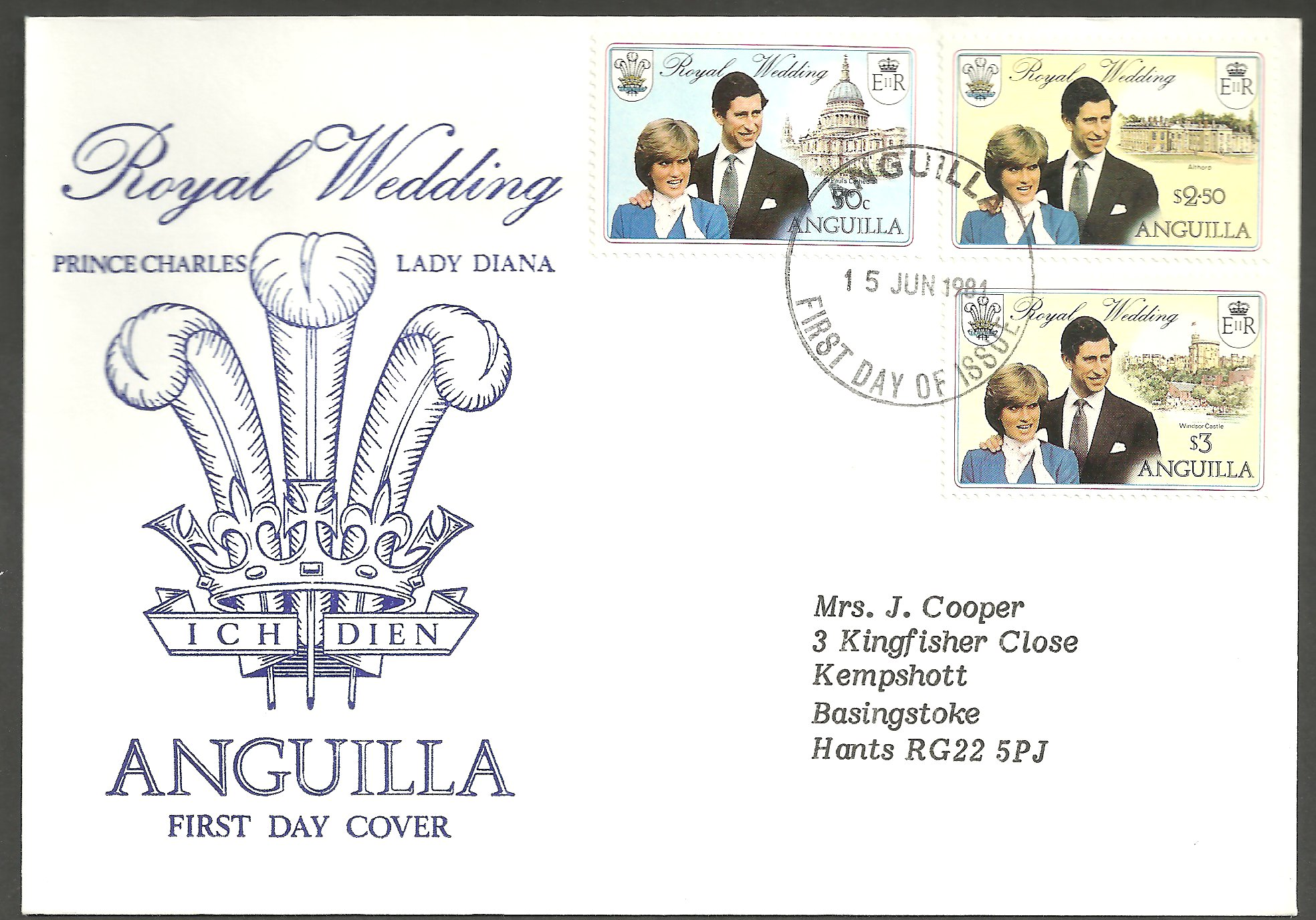 Anguilla Scott 444-446. Complete set on first day cover addressed with cachet.