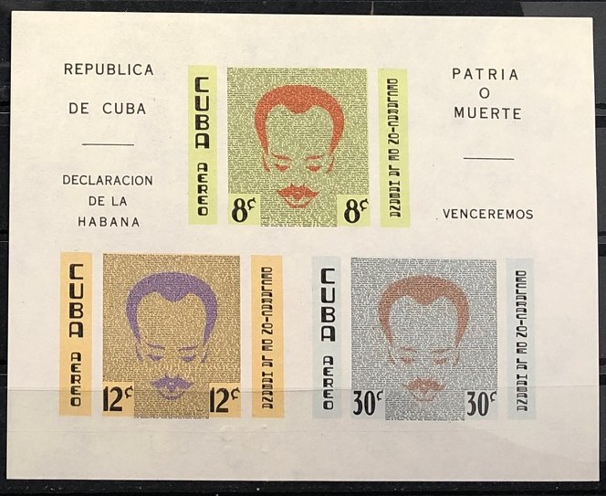 Jose Marti and "Declaration of Havana," 1961. Souvenir sheet.