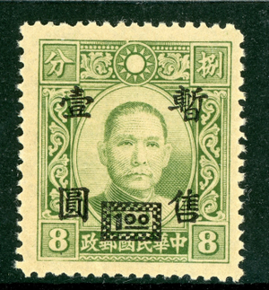 Central China 1943 Japan Occ $1.00/8¢ DT Unwmk SYS OG Sc#9N41 MNH Q129