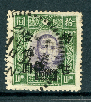 Central China 1943 Japan Occ $100/$10.00 DT Wmk SYS Sc#9N67 VFU Q221