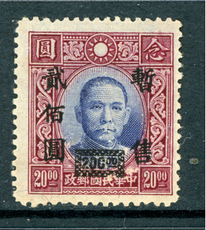 Central China 1943 Japan Occ $200.00/$20.00 DT Unwmk SYS Sc#9N56 Mint Q196
