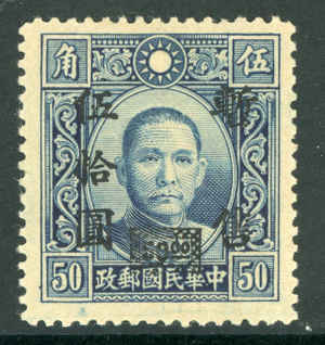 Central China 1943 Japan Occ $50.00/50¢ DT Unwmk SYS Perf 14 Sc#9N52 Mint Q179
