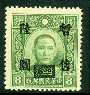Central China 1943 Japan Occ $6.00/8¢ Dah Tung w/Dah Unwmk Green Sc #9N48 Q165