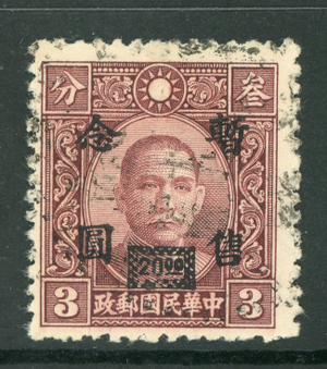 Central China 1943 Japan Occupation $20.00/3¢ ChungHwa SYS Sc #9N28 VFU X223