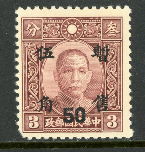 Central China 1943 Japan Occupation 50¢/3¢ Chung Hwa SYS Sc #9N8 Mint 93
