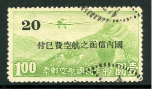 Central China 1943 Japan Occupation Airmail 20¢/$1.00 9NC2 Postally Used U639