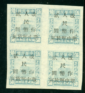 Central China 1949 Liberated Train 2 Yuan/50c Imperf Block MNH L890 ⭐⭐⭐⭐⭐⭐