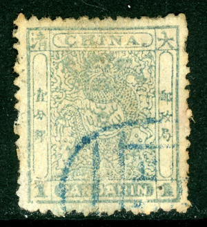 China 1885 Imperial Small Dragon 1¢ Green Rough Perf 12½ Scott #10 VFU M32
