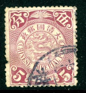 China 1905 Imperial 5¢ Lilac Coiling Dragon Sc #127a VFU K199