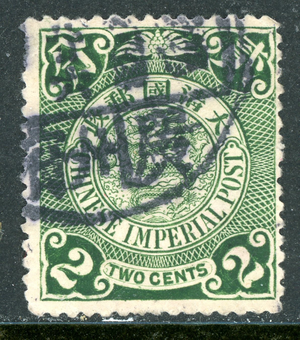 China 1908 Imperial 2¢ Green Coiling Dragon Lunar CDS Sc #124 VFU P103