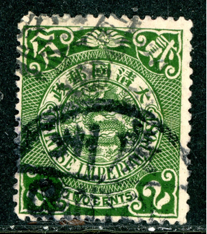 China 1908 Imperial 2¢ Green Coiling Dragon Sc #124 VFU P95