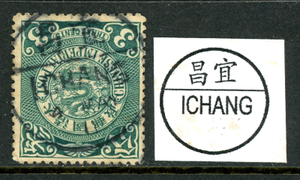China 1910 Imperial 3¢ Blue Green Coiling Dragon ICHANG Sc #125 VFU O295