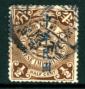 China 1912 Imperial ½¢ Brown Coiling Dragon London Overprint Sc #163 VFU O907
