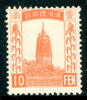 China 1932 Manchukuo 10 FEN Orange Scott #11 Variety Mint M745