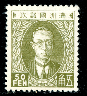 China 1932 Manchukuo 50 FEN Olive Green Scott #17 Mint V610