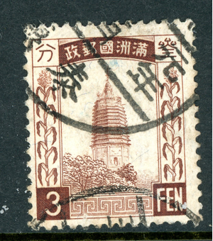 China 1934 Manchukuo 3 FEN Brown Granite Scott #27 VFU Q159