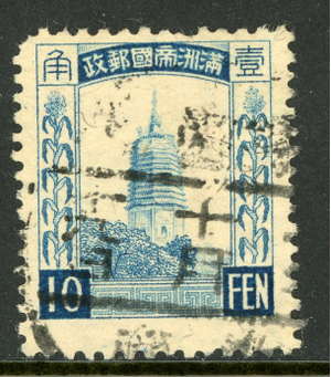 China 1935 Manchukuo 10 Fen Wmk Scott #57 Blue VFU O338 ⭐⭐⭐⭐⭐