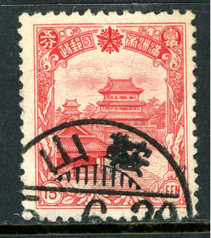 China 1936 Manchukuo 15f Carmine Scott #96 VFU M931