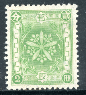 China 1936 Manchukuo 2f Light Green 3rd China Issue Scott #75 MNH V276