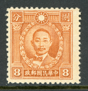 China 1940 Republic 8¢ Martyr Thick Paper Thin Gum Scott 428v MNH T252