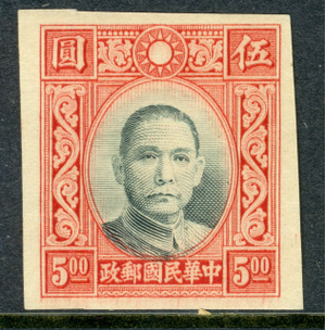 China 1940 Republic Dahtung $5.00 Unissued SYS Unwatermarked Mint J750