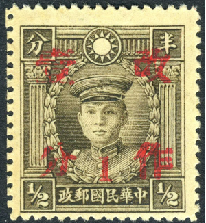 China 1942 1¢ Kwangsi Second S/C on ½¢ Peking Low Martyr Chan 542a Mint C348