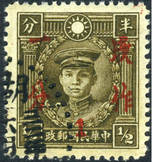 China 1942 Wartime Surcharge 1¢ Hunan-Kwangtung on ½¢ Variety VFU B512 ⭐⭐⭐⭐⭐