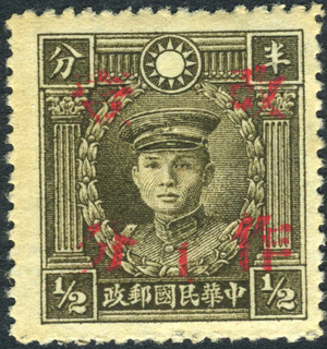 China 1942 Wartime Surcharge 1¢ Kwangsi 2nd S/C on ½¢ Peking Low Martyr MNH B576