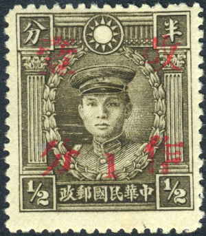 China 1942 Wartime Surcharge 1¢ Kwangsi 2nd S/C - ½¢ Peking Tall Martyr MNH B585