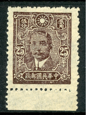 China 1943 Central Trust SYS 25¢ on Thin Paper MNH F858