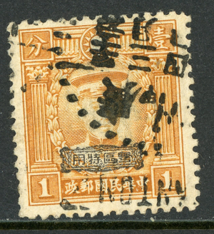 China 1943 Japanese Occ Kwangtung 1¢ Martyr Sc 1N14 VFU M659