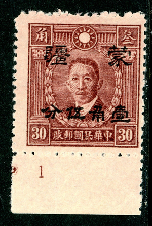 China 1943 Mengkiang Japan Occ 30¢ NP Martyr Sc #2N88 Mint M279