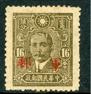 China 1943 Republic 16¢ Olive Brown Military Scott M5 Vertical Lines Mint Z85