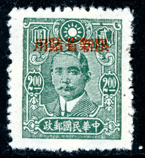 China 1943 Sinkiang $2.00 SYS Deep Grn ?Paper? Ty 2 OP CSS SK ?? P12½ Mint U11
