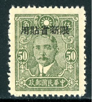 China 1943 Sinkiang 50¢ Ol Grn SYS CTkNP w/o Lines Ty 1 OP CSS 214 P13 Mint U17