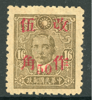 China 1943 Wartime 50¢/16¢ East Szechuan Scott 530f50v PERFORATION 11 Mint S943